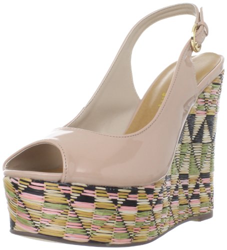 Our Price : $49.95 Madden Girl Women's Katchme Slingback Pump Add some texture to your silhouette with the Katchme pump from Madden Girl. The woven wedge commands attention while the sleek and simple upper plays the perfect counterpoint. An adjustable buckle makes the fit yours and the open toe adds plenty of flirt.